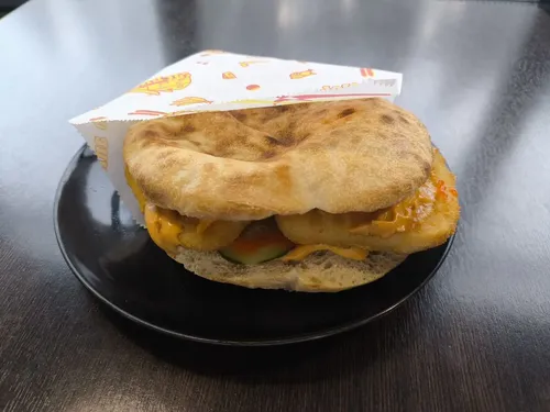 Две куриные котлеты фри в пите + много свежих огурцов и помидоров с соусом 1000 островов и капелькой соуса чили