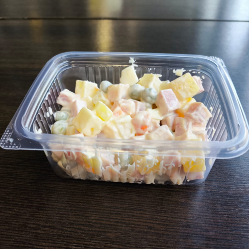 курица, лечо из болгарского перца, помидоры и огурцы, майонез, капуста на выбор, чеснока в составе НЕТ