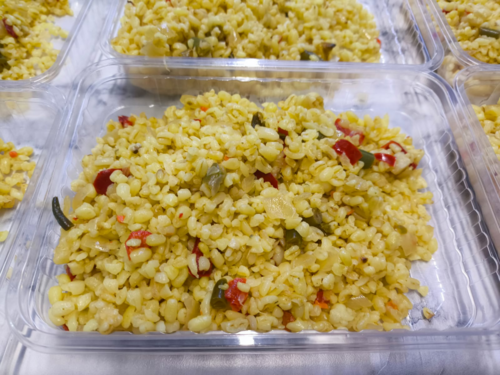 булгур, лук, болгарский перец, фасоль стручковая зелёная